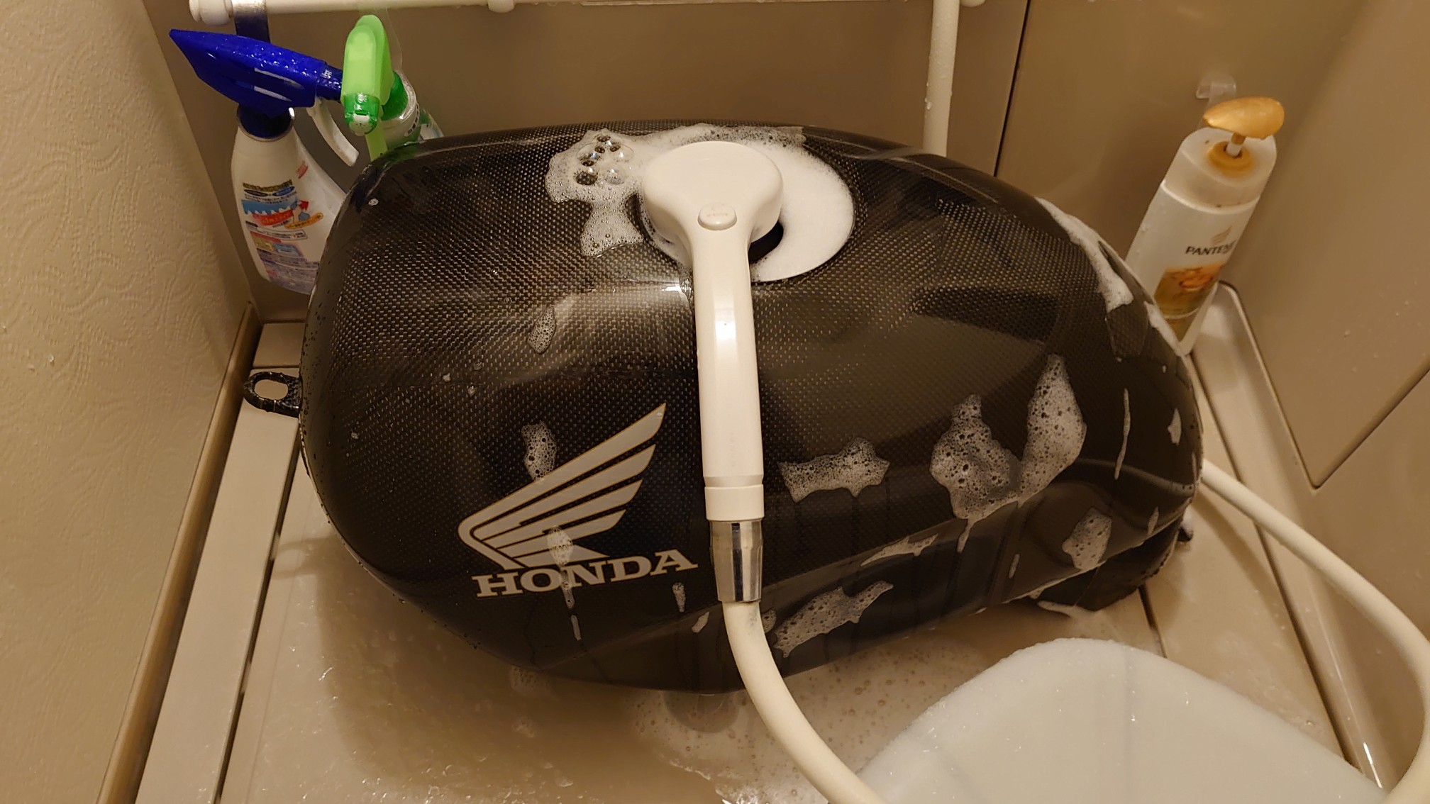 容量がでかい分形状が複雑で、ポンプだけじゃ完全にガソリンが抜けないので結構洗わないと臭い。